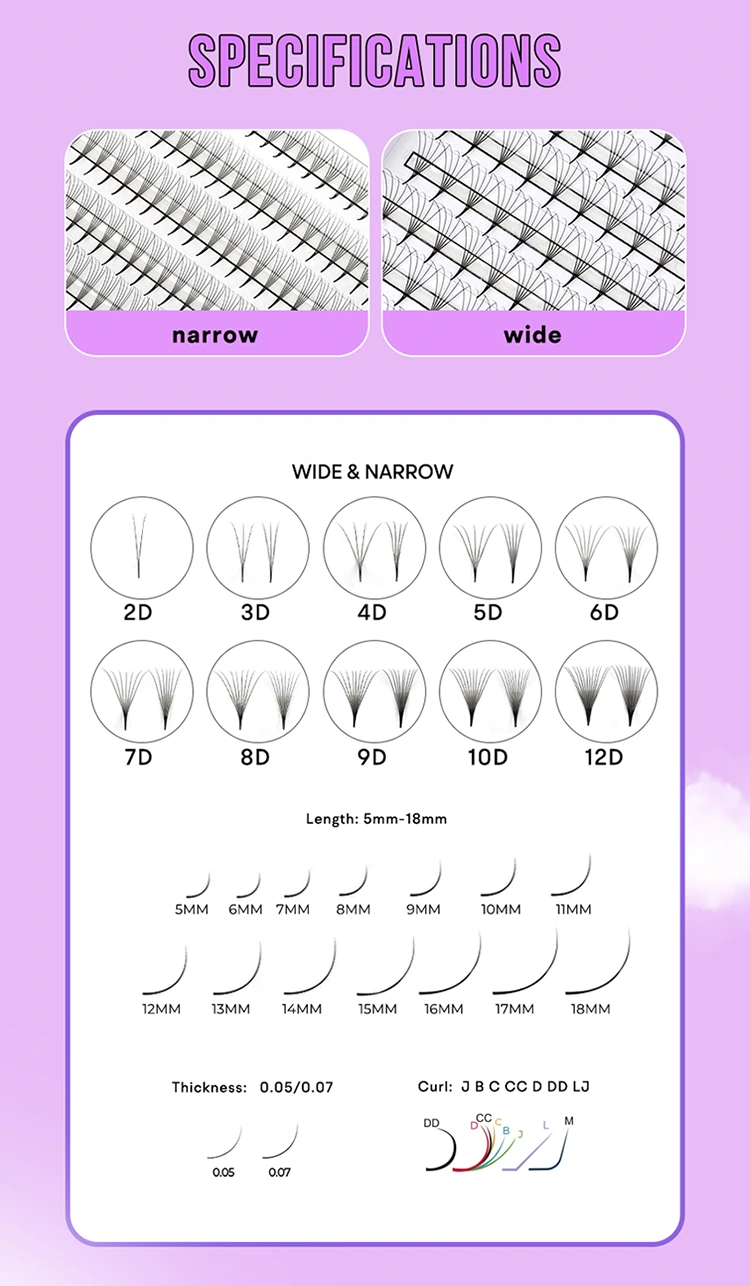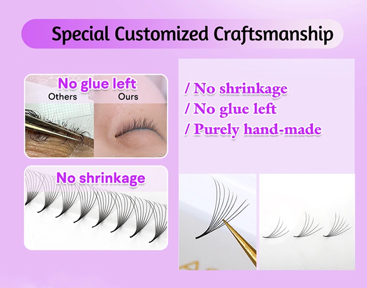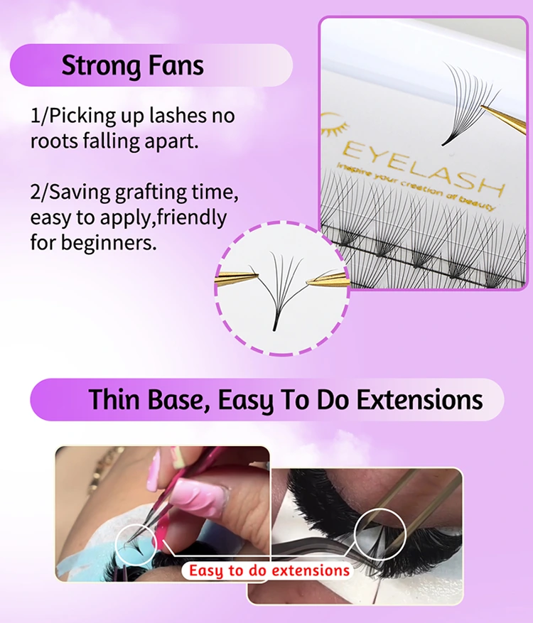 Mega Volume - Fluffy and Flaffourous: 500 fanúšikov ručne vyrábaných rias je vyrobený z matného čierneho materiálu PBT, ktorý prináša zákazníkom nadýchaný a objemný efekt, vďaka čomu sú ich oči výraznejšie. Tieto falošné mihalnice môžu spôsobiť, že oči vynikajú a sú vhodné na vytváranie pútavých vzhľadov. Mäkký matný čierny efekt dodáva pocit luxusu a pochúťky, ktorý je vhodný pre každú príležitosť