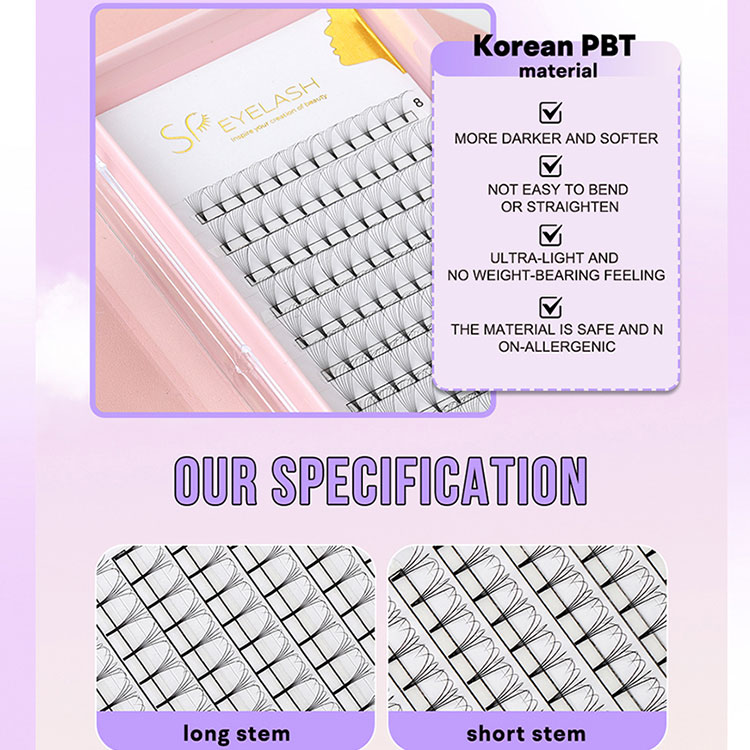 Kompozitná technológia: SP EYELASH 6D Pre Made Fans využívajúce kórejské vlákno PBT v kombinácii s procesom tepelného spájania, priľnavosť je silná a nedochádza k odlepeniu. Zákazník si overil, že bol nepretržite používaný 200-krát bez prasknutia.