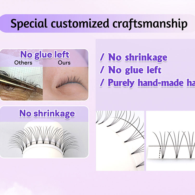 Personalizované prispôsobenie: Špeciálne štýly ventilátorov SP EYELASH 6D Pre Made Fans, ako je voľné perie a stočené perie v tvare L, je možné prispôsobiť.