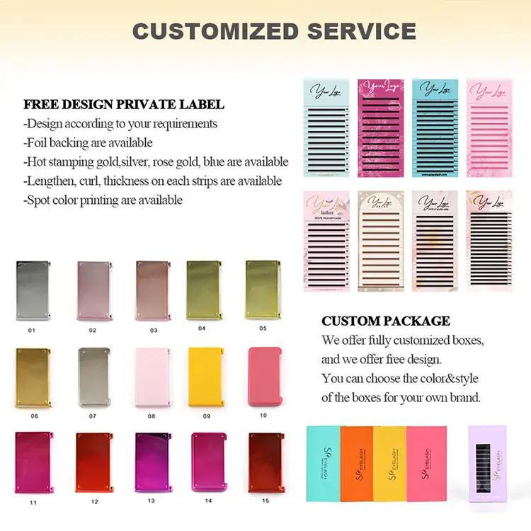 Rozšírenie rias SP verí v silu personalizácie. Preto poskytujeme prispôsobené služby pre produkty na rozšírenie mihalníc. Svoje logo si môžete vytlačiť na výrobkoch z rias a vytvoriť jedinečný obrázok značky.